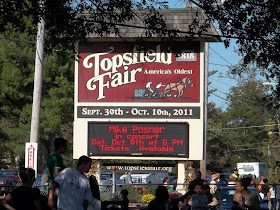 Now being that I'm here from Texas, I attended the Texas State Fair in Dallas several times and that is probably the LARGEST fair I have ever been to. This one as quaint and cute as it was is no comparison to this fair. But there was lots of activities to do there, like visit the pig barn which was kind of a rip. Because there is much talk about the piglets and that is what Brian wanted to do pet a piglet. By the time we got there, they were all sleeping and not running around and you couldn't even pet them....WHAT GIVES?????