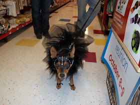 I'm thinking to myself...oh wow me and Zoey got this in the bag.  Then a cat (the only cat) shows up as a king...it had a crown and a cape...okay...that's cute too, but I'm thinking..we still have a chance.  Then a dog dressed as the Black Swan shows up and I'm like wow!  After that we have a dog dressed as a devil that showed up and in a wheelchair...okay we are screwed!