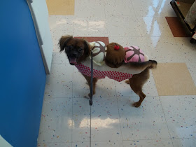 So today was definitely a fun day.  It was mostly for Zoey to get out and socialize with other dogs.  The local Petco in Quincy was not only having a "Howl-o-ween Pet Costume Contest" but they had a mixed breed mixer afterwards.  And Zoey got to ride the bus for the first time today!